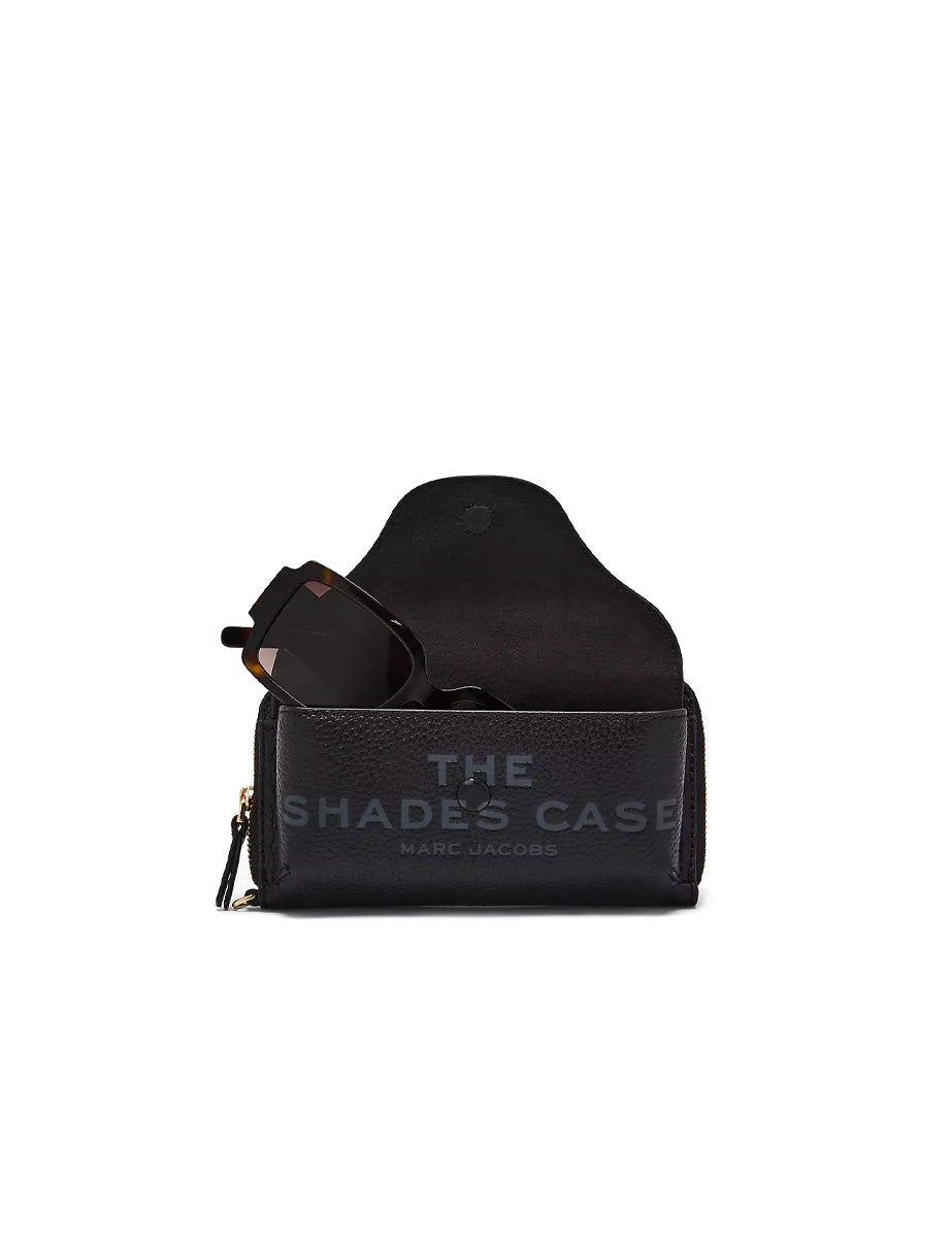 Porta occhiali in pelle nera martellata, chiusura superiore con zip e contenitore frontale con chiusura magnetica . Presenta 4 scomparti porta carte, un cinturino da Polso Rimovibile e l’interno è foderato in microfibra scamosciata.