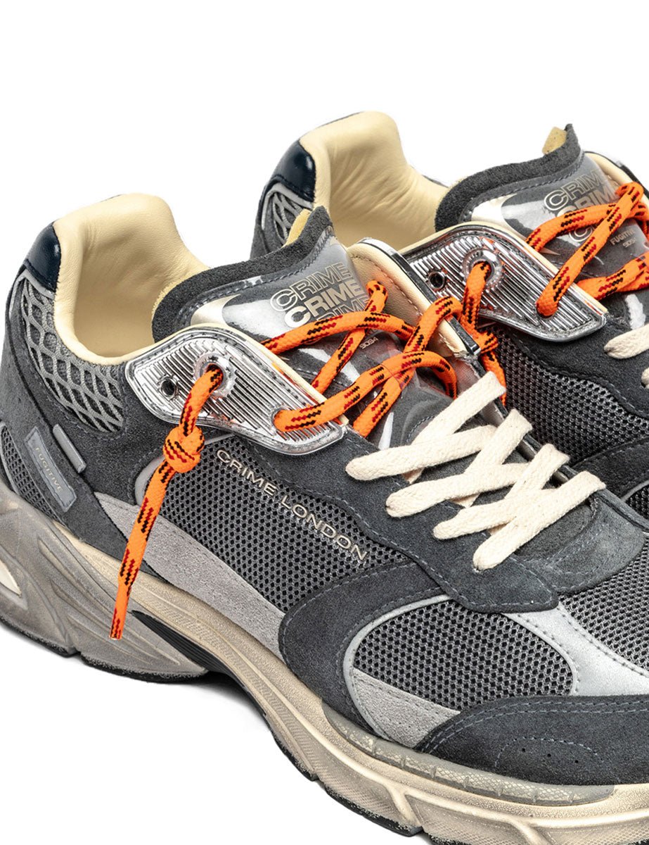 Sneaker in suede con intervento in tessuto tecnico in tono. Presenta linguetta con label logata in gomma e doppi lacci in cotone bianchi e arancioni.