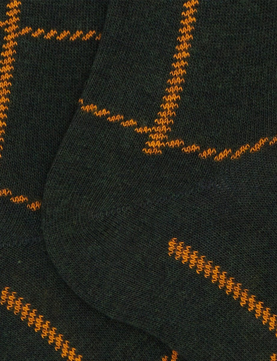 Calze lunghe da uomo, motivo check color senape su base color verde foresta. Logo Gallo riportato in punta a contrasto.