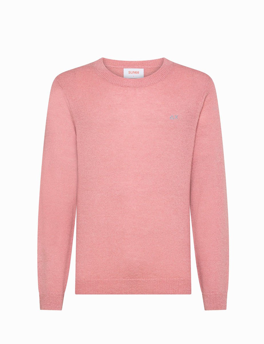Maglia girocollo in filato misto lana e alpaca color rosa candy, manica lunga e logo ricamato in filo a contrasto sul petto. Finiture collo, polsi e fondo in costa.