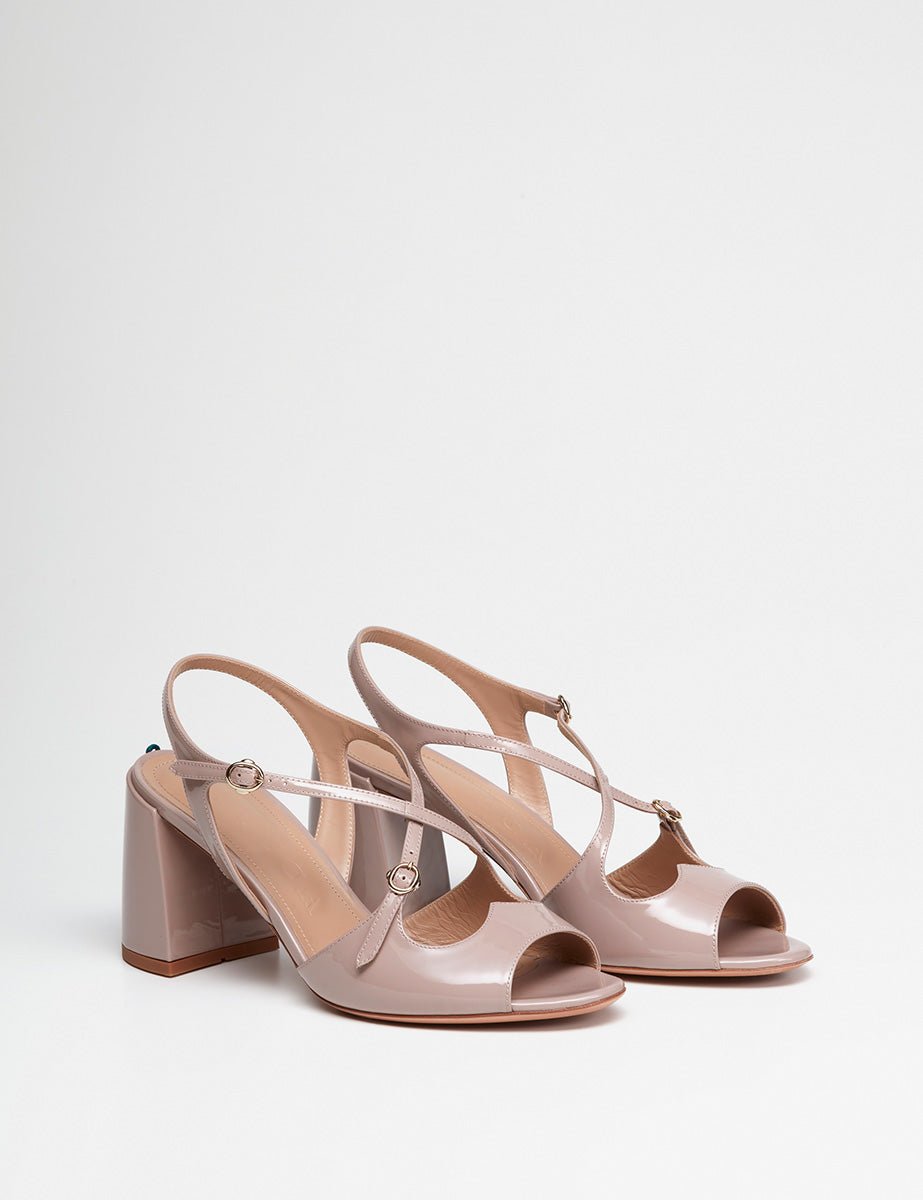 Sandalo realizzato in pelle di vitello verniciata nude.