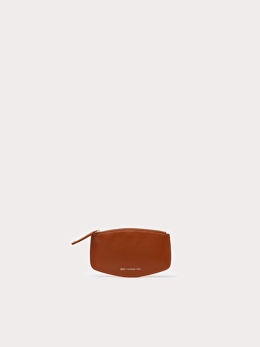Realizzato in pelle di vitello marrone rust, questo borsellino presenta una chiusura con zip in alto. Da portare in borsa.