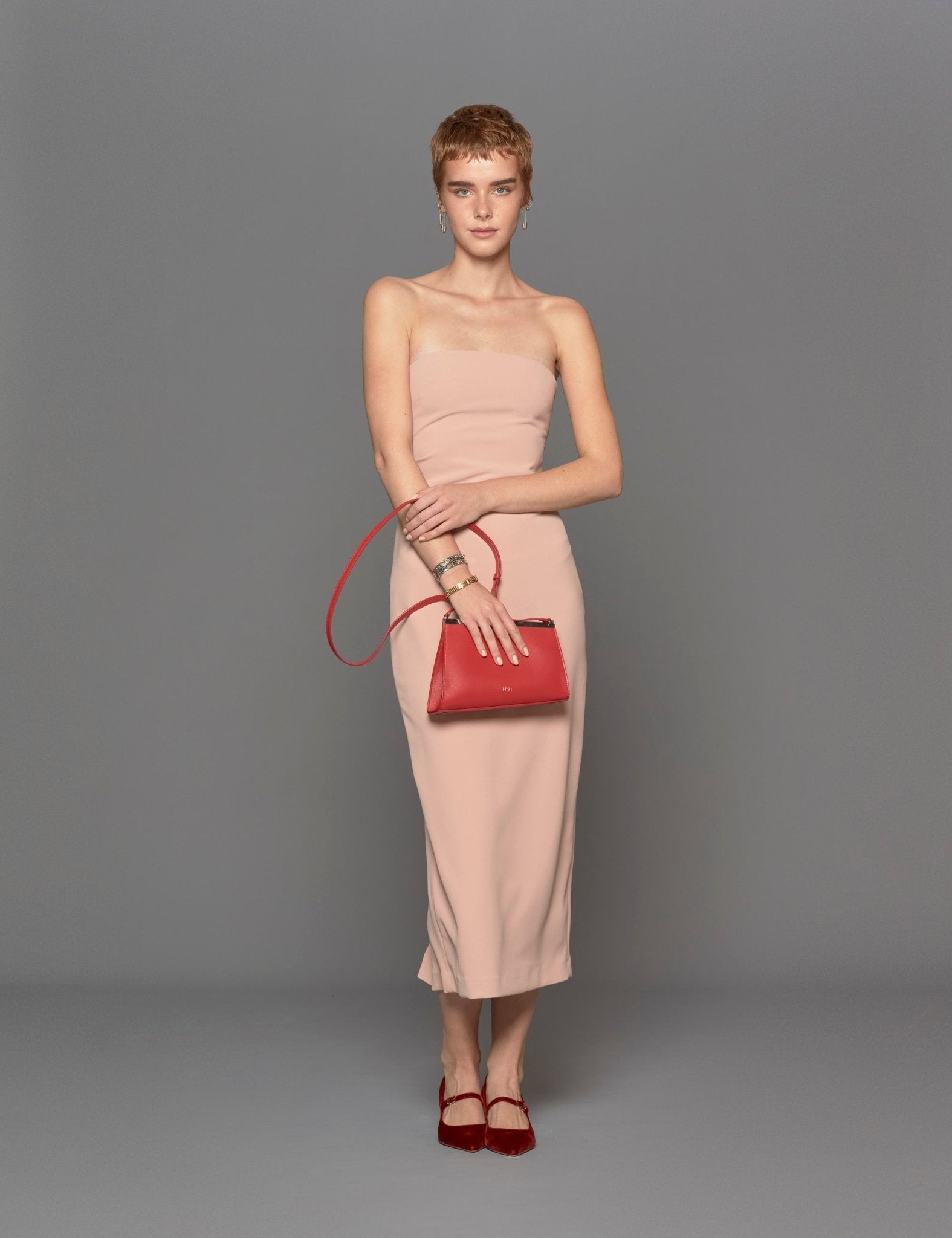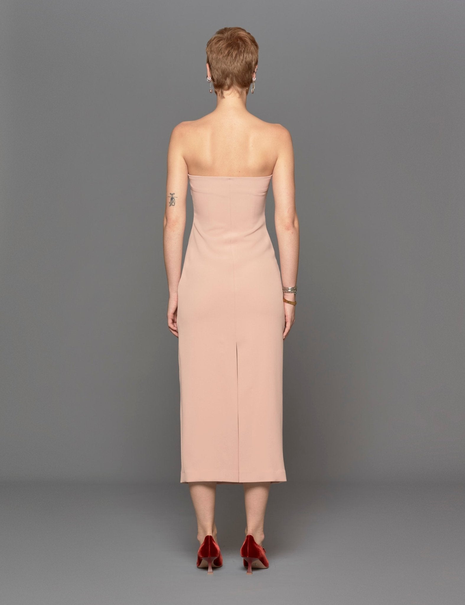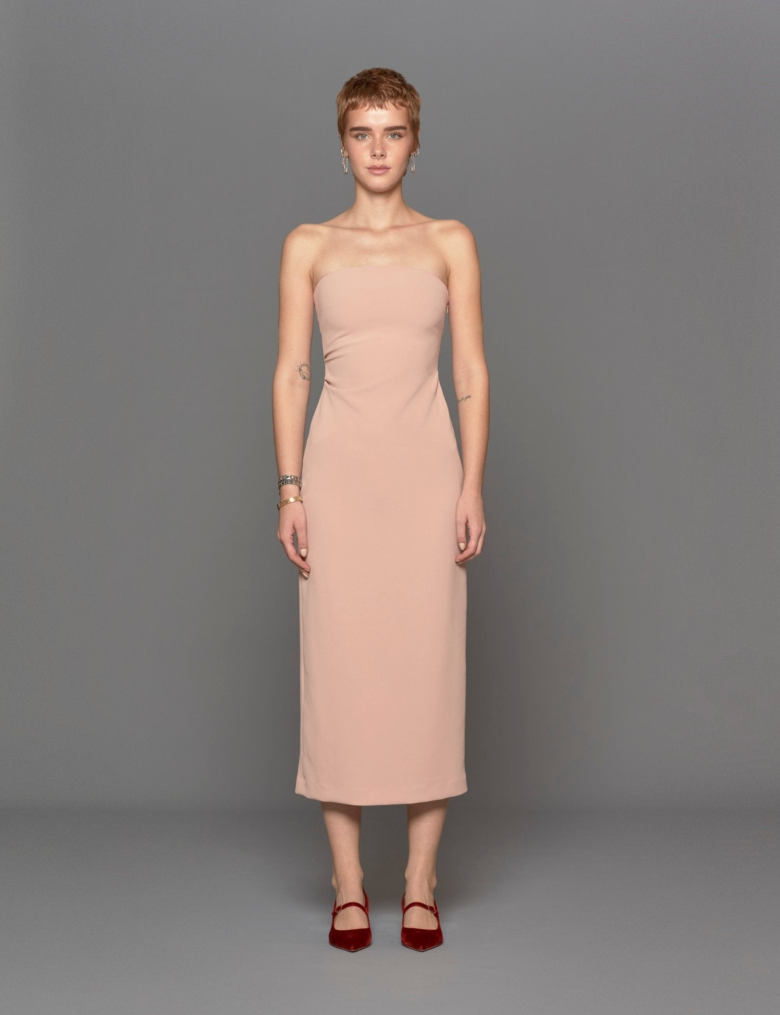 Abito tubino in misto poliestere rosa. Presenta spalline sottili.