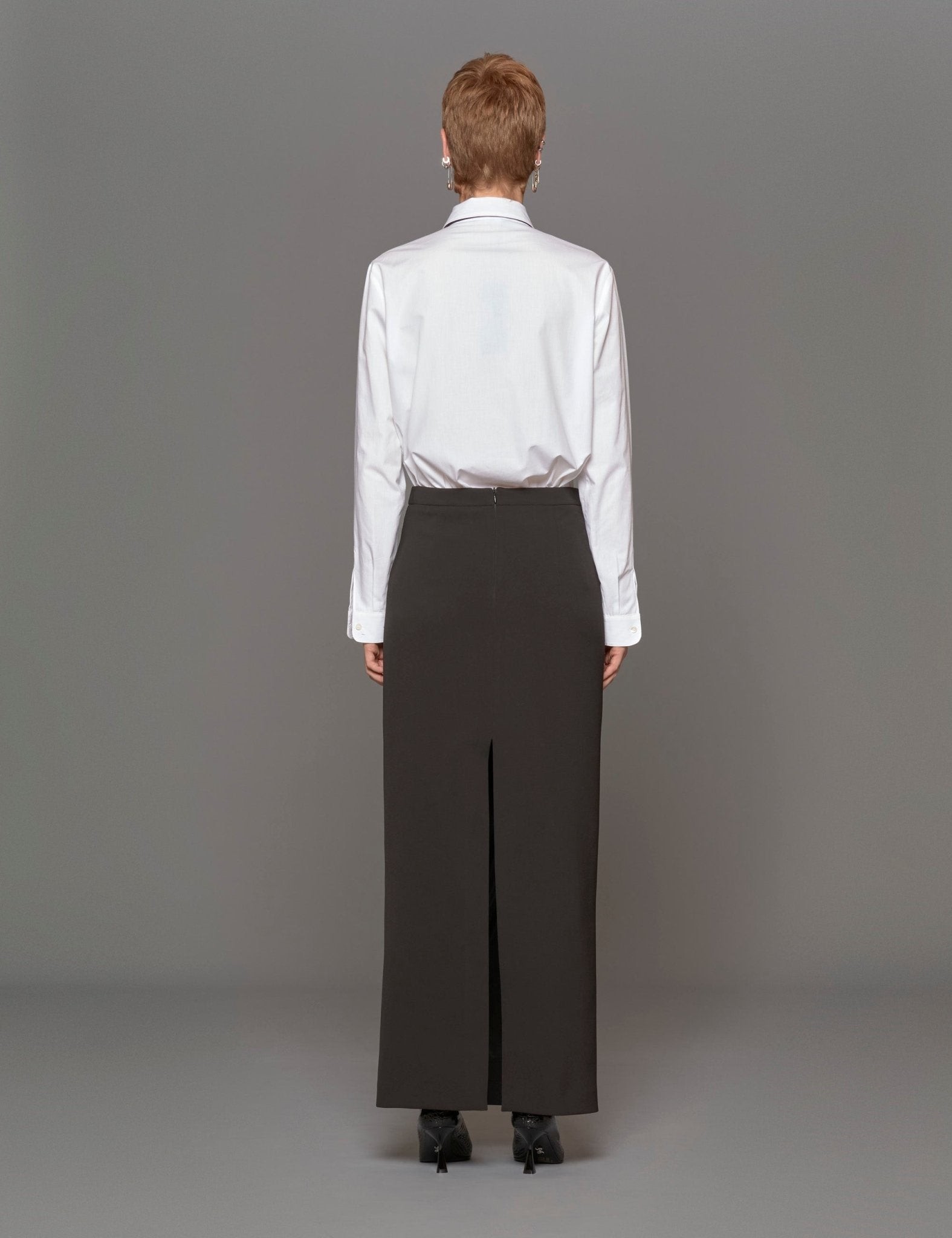 Camicia a maniche lunghe in cotone bianco con cravatta nera. Presenta colletto regolare e chiusura a bottoni.