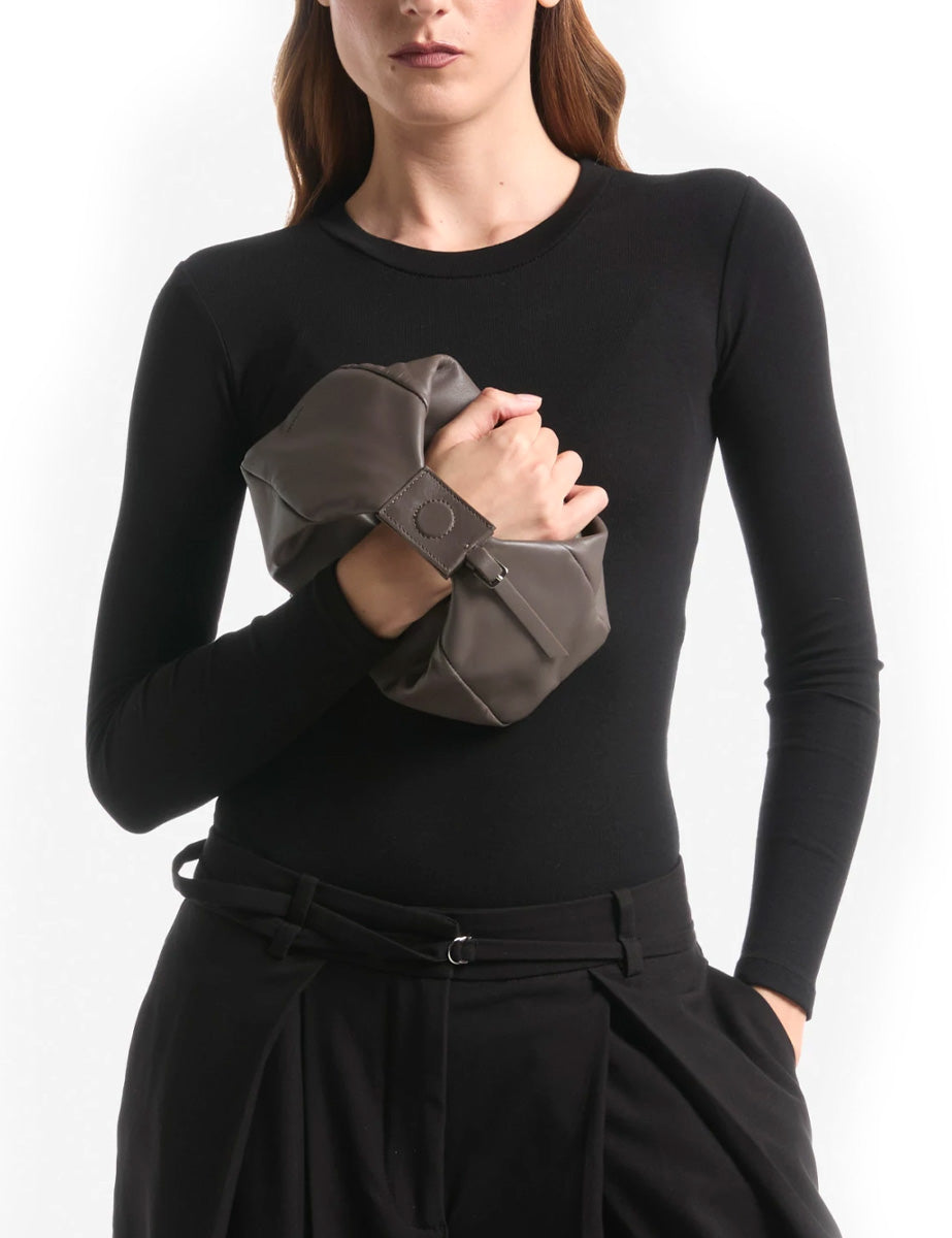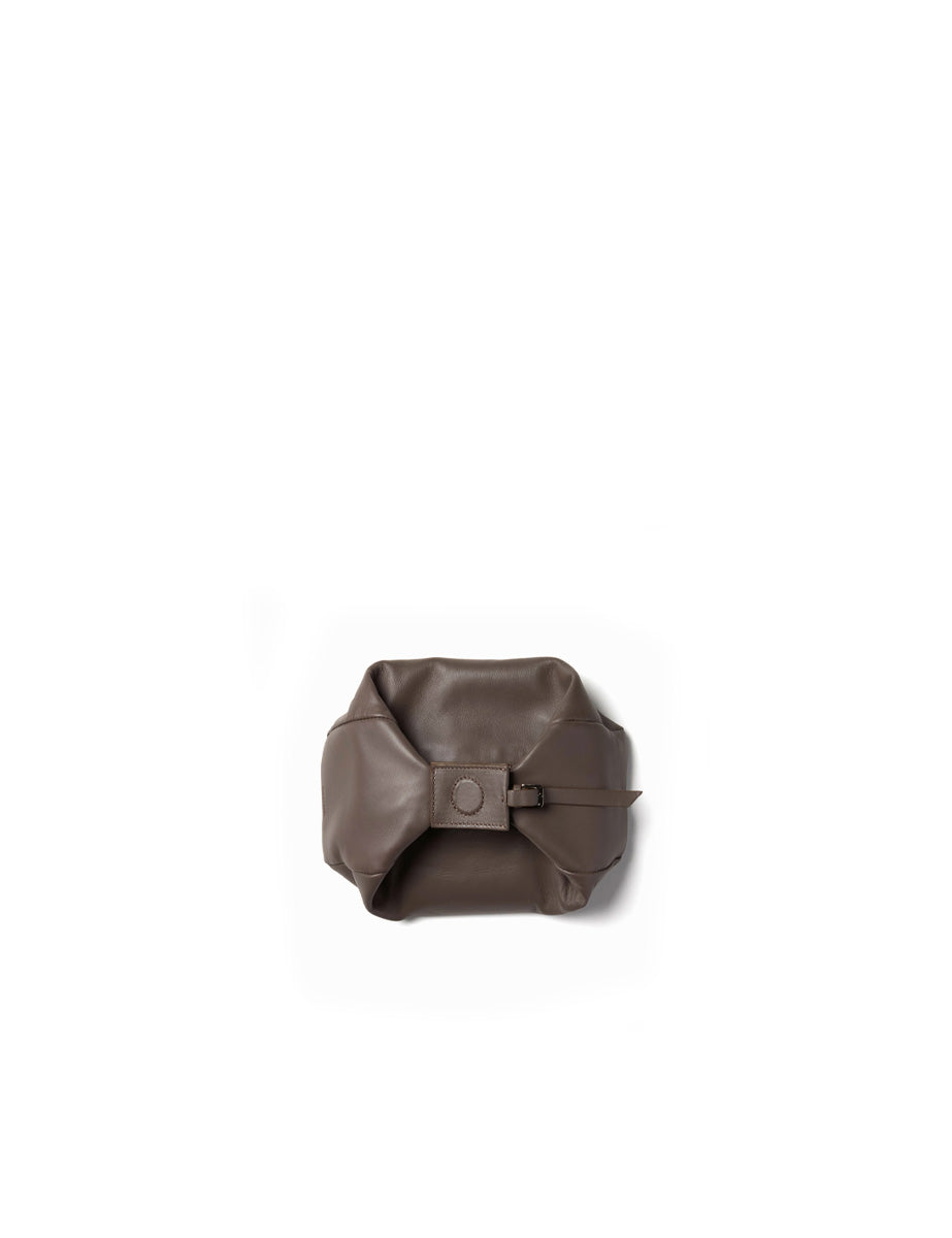 Borsa  in pelle color taupe, è dotata di uno scomparto interno e di una chiusura superiore con zip metallica. Manico superiore con snap magnetico per portabilità a mano.