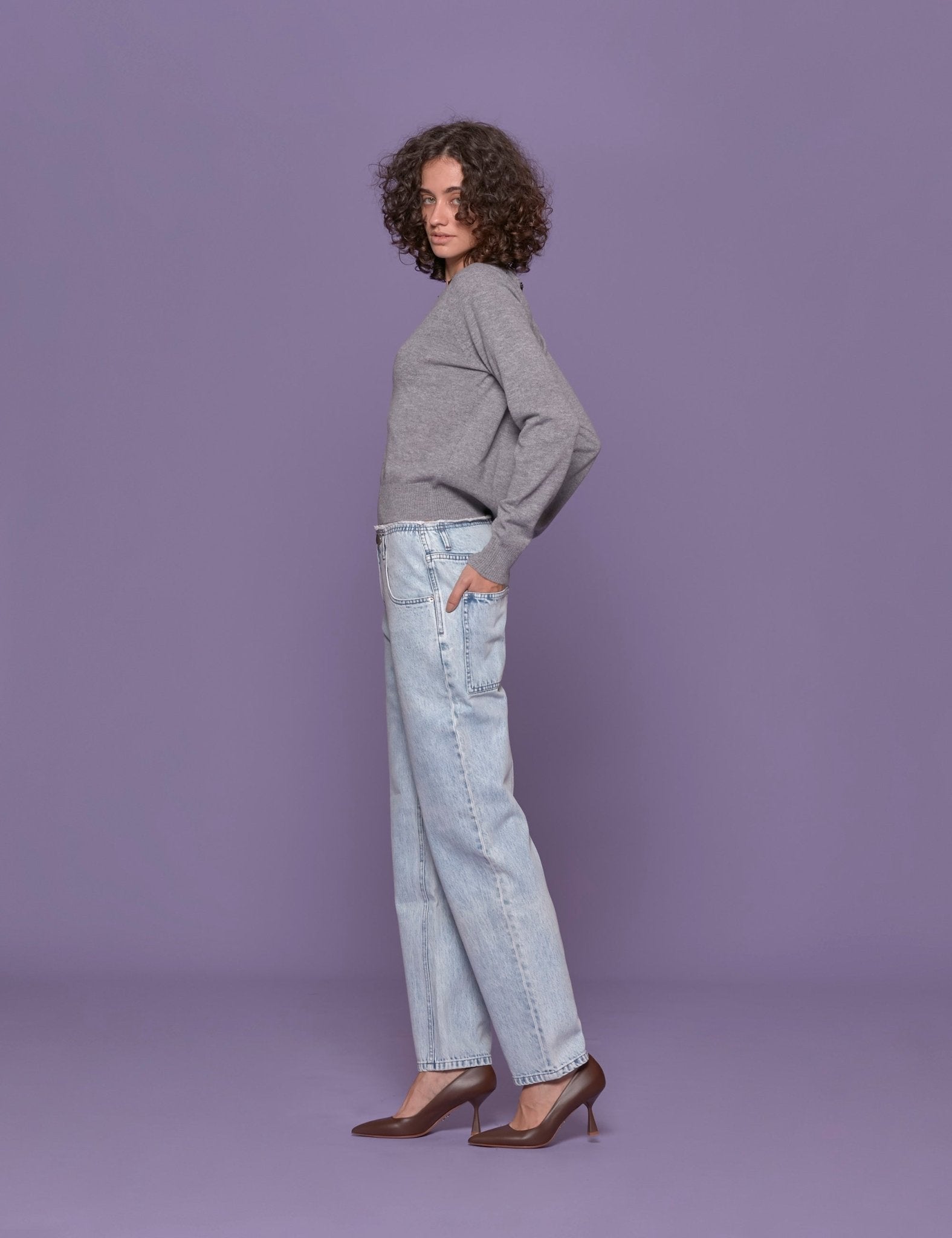 pullover girocollo pietre grigio