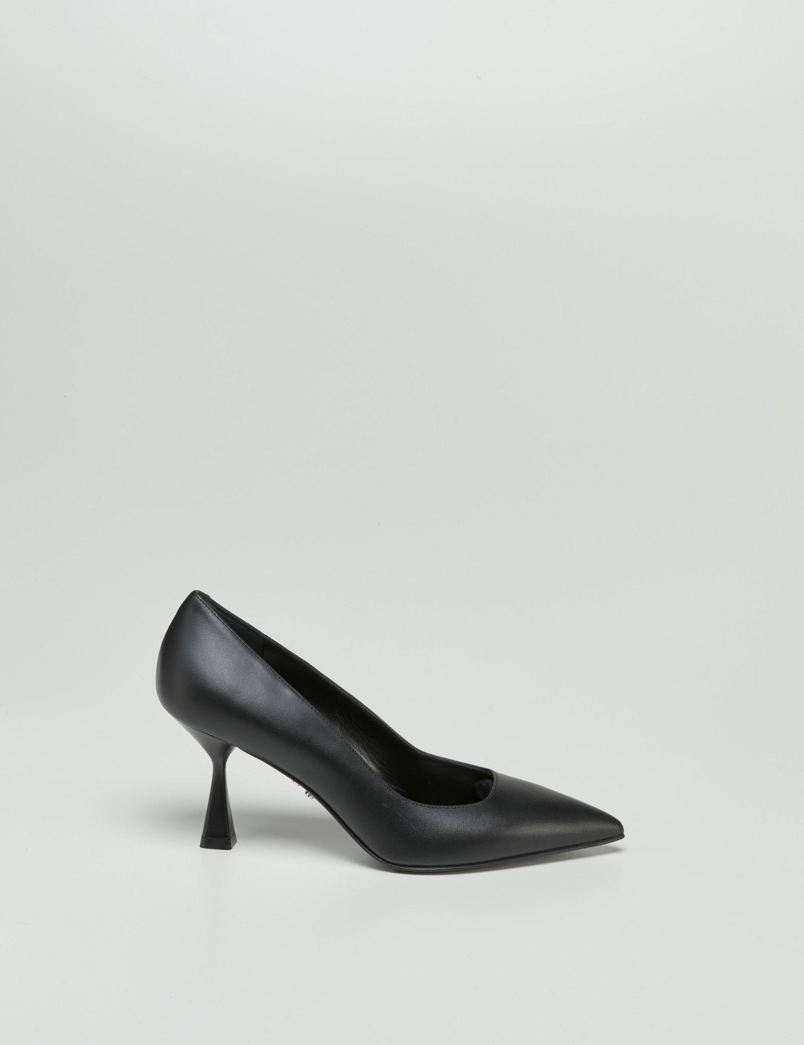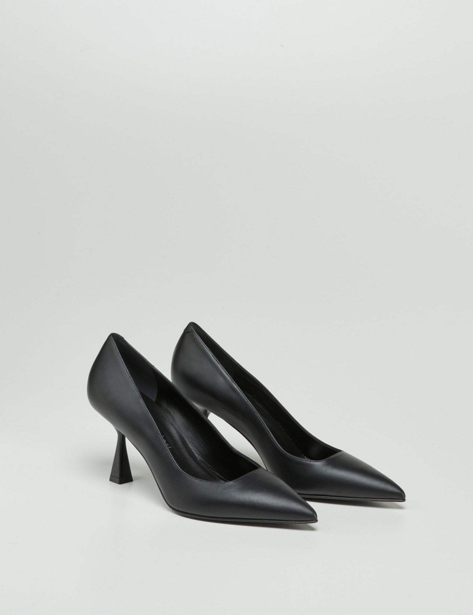 Decollete di Sergio Lavantesi in pelle nera. Presenta tacco piramide di 7cm.