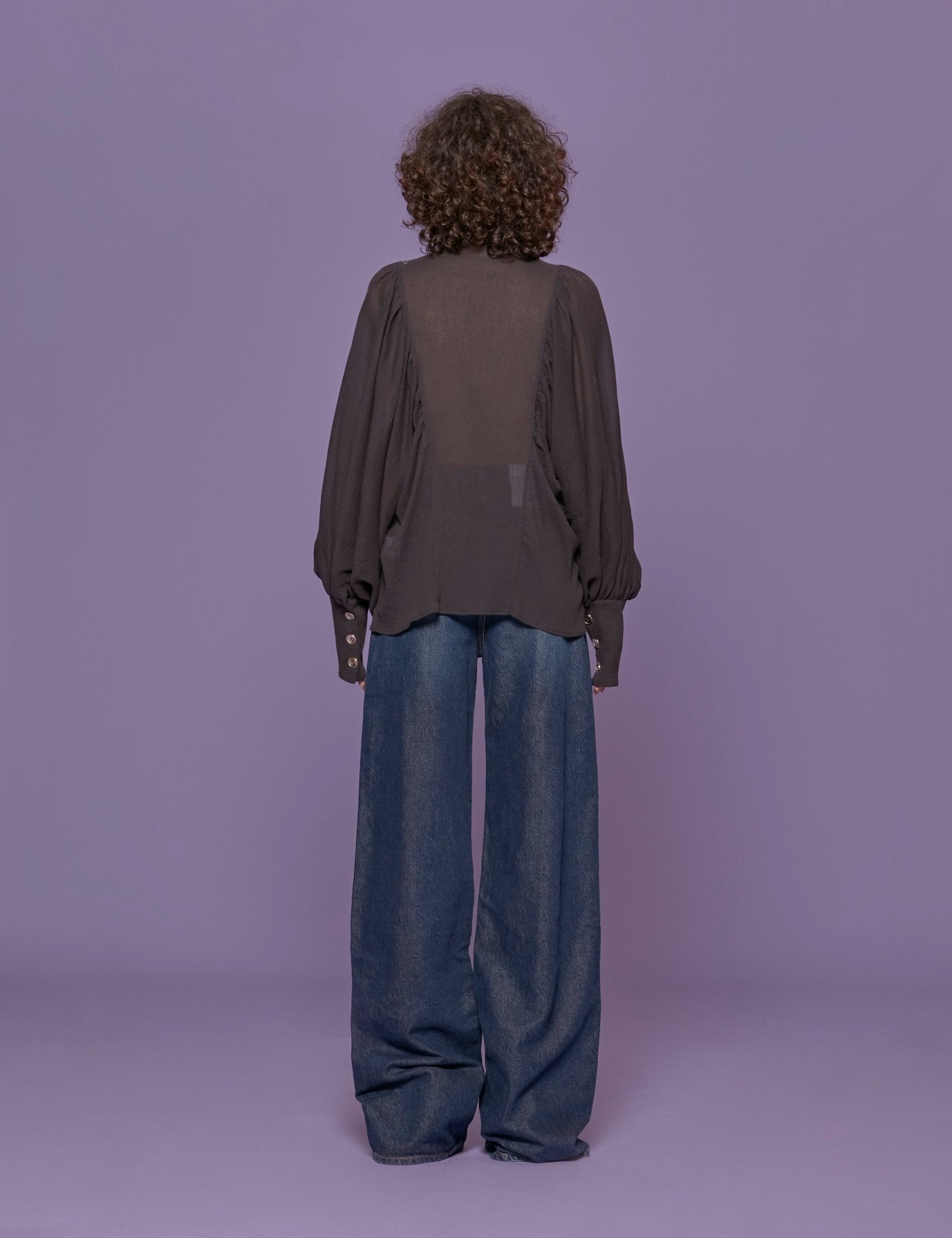Camicia in cotone organico nero The Label Edition. Presenta colletto con fiocco, maniche larghe a sbuffo e polsino stretto.